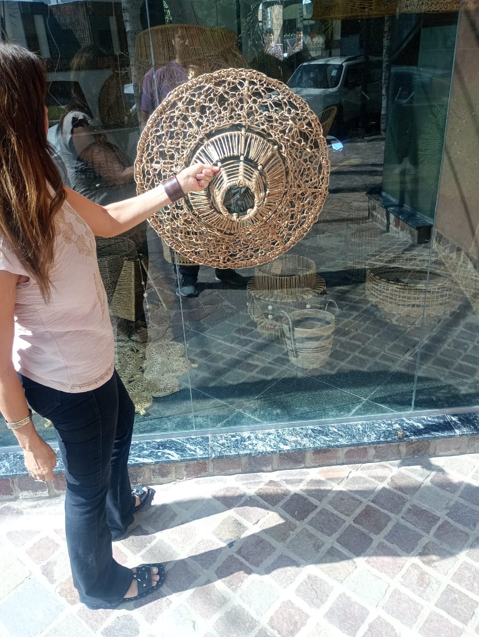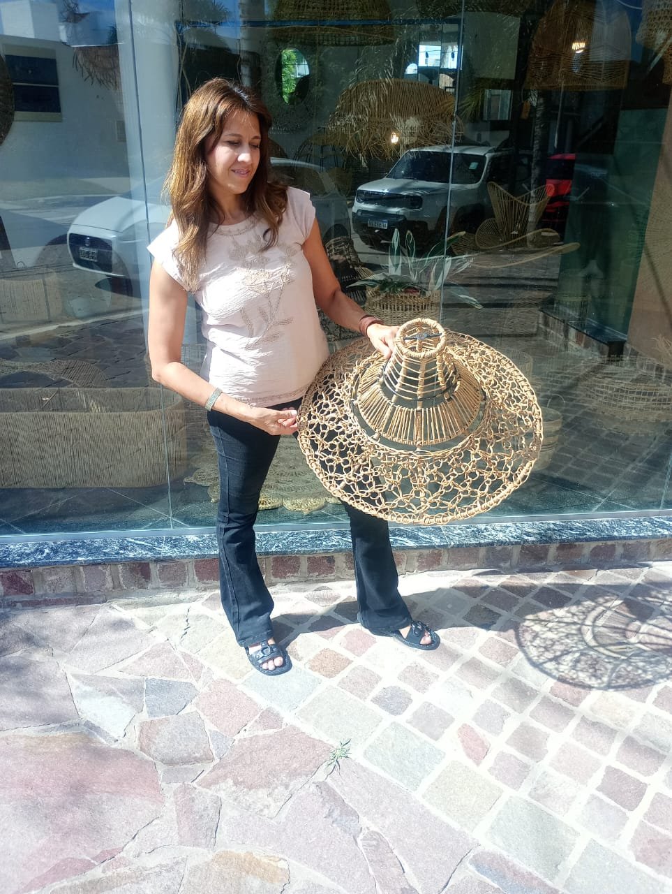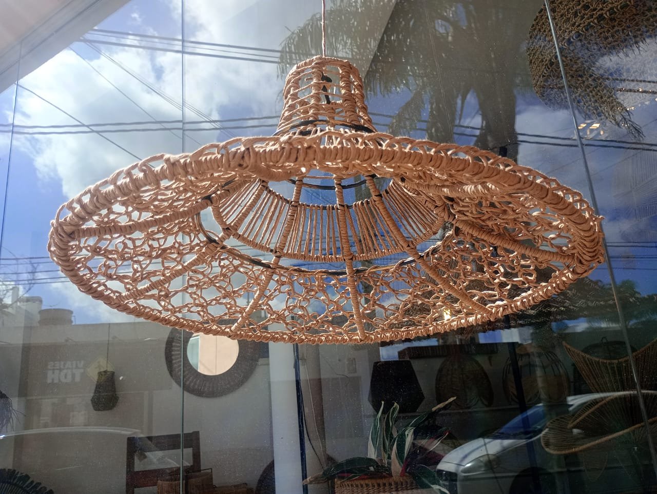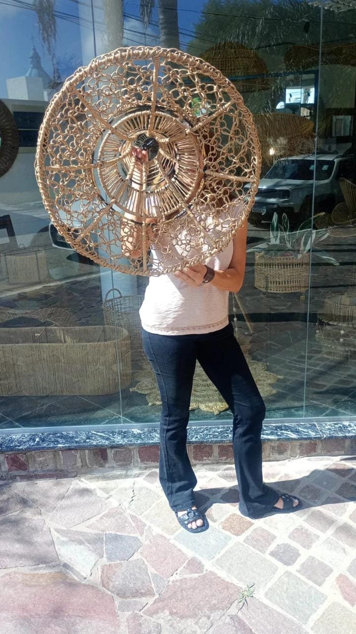 Lámpara elaborada en una estructura de hierro con hilo kraft. Da calidez a cualquier tipo de ambiente