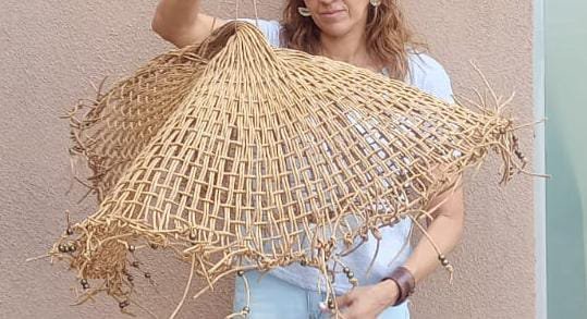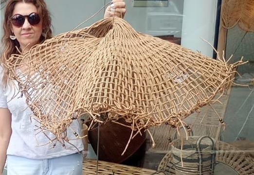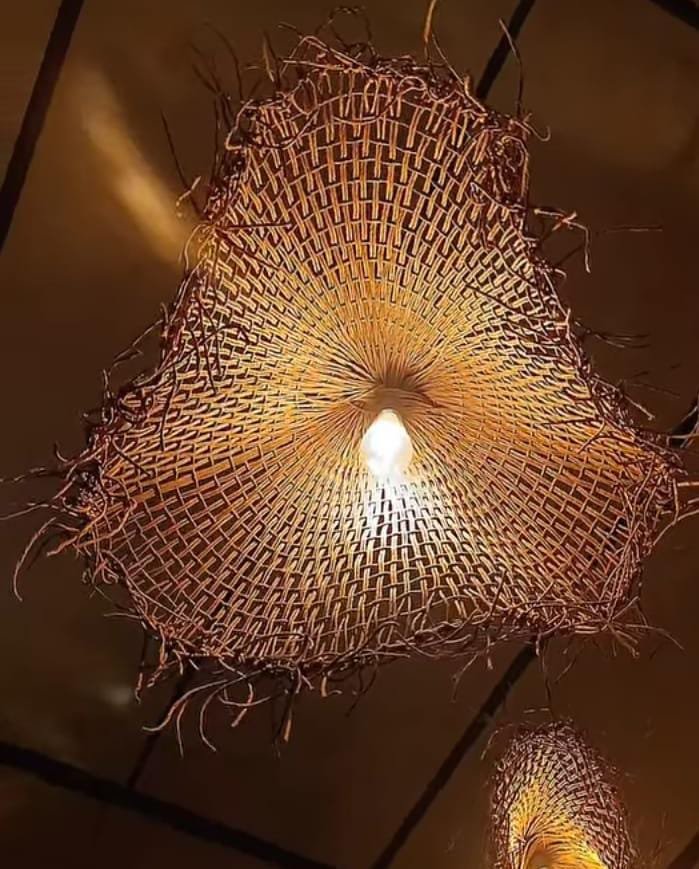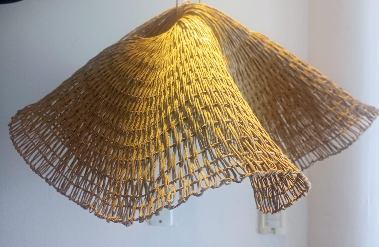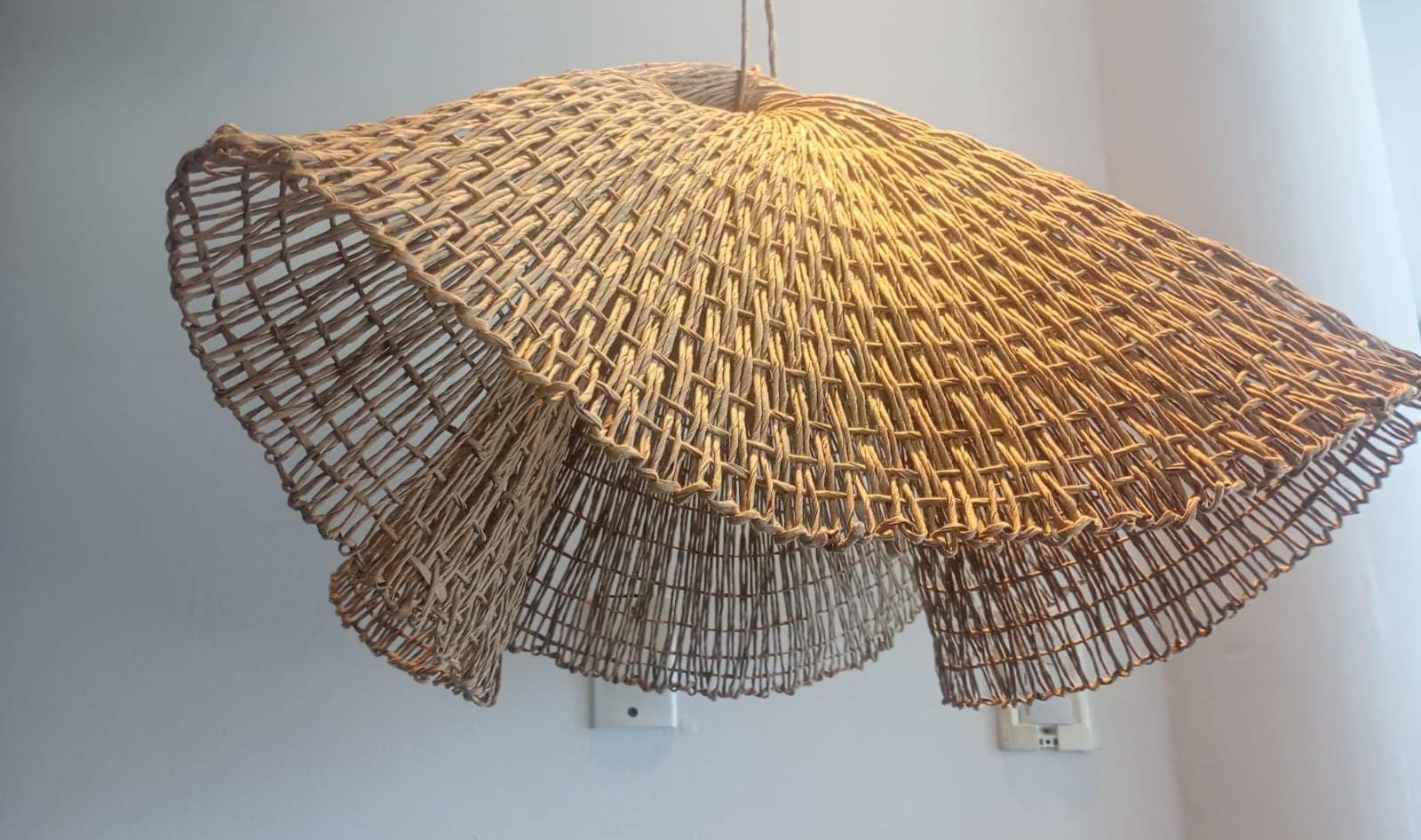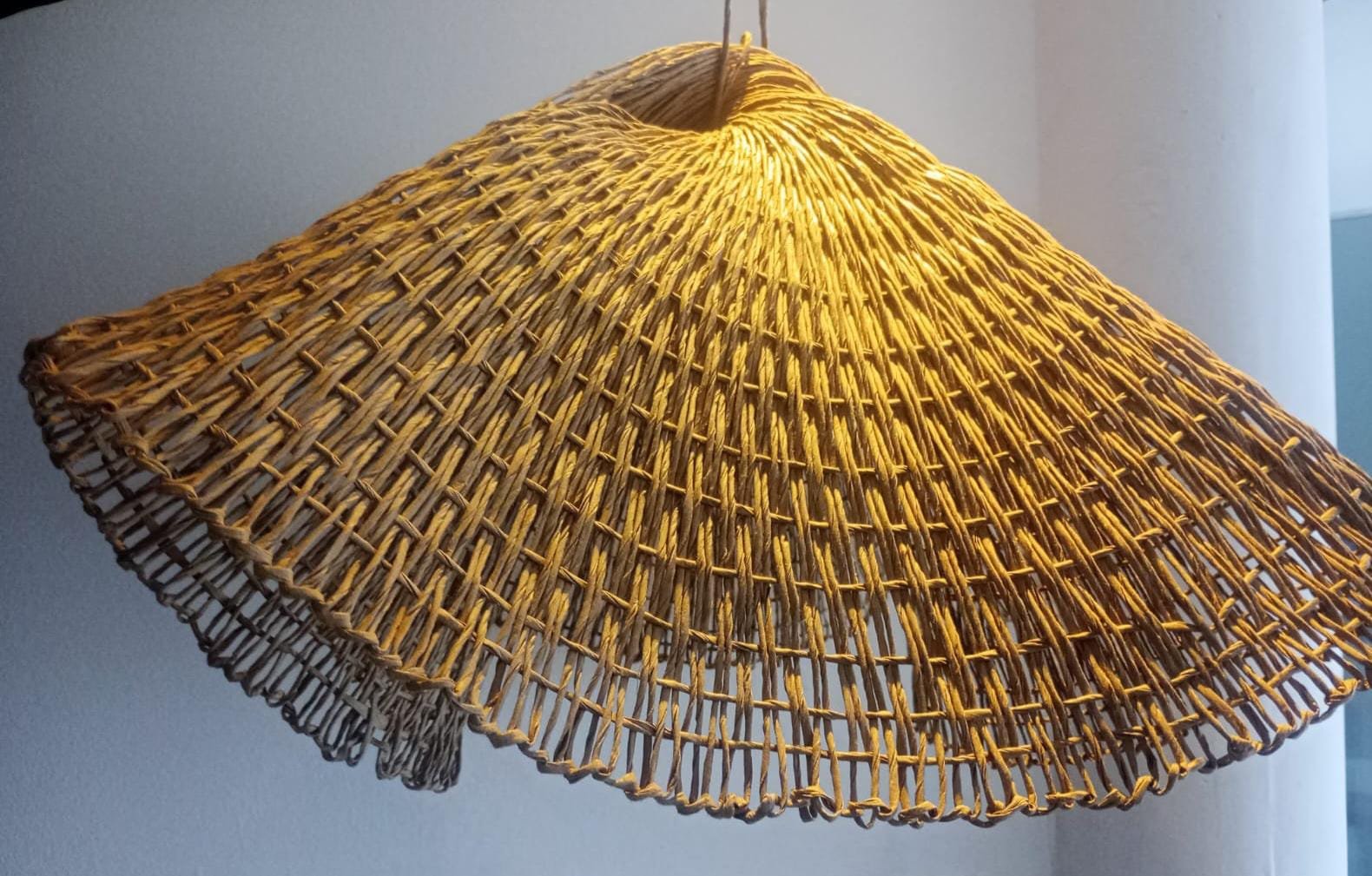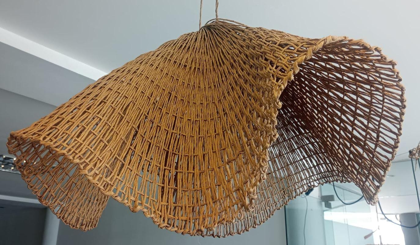 Tejida íntegramente con hilo kraft, esta lámpara Capelina destaca por su caída ligera y su estética rústica , proyectando una luz cálida.