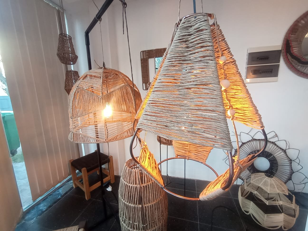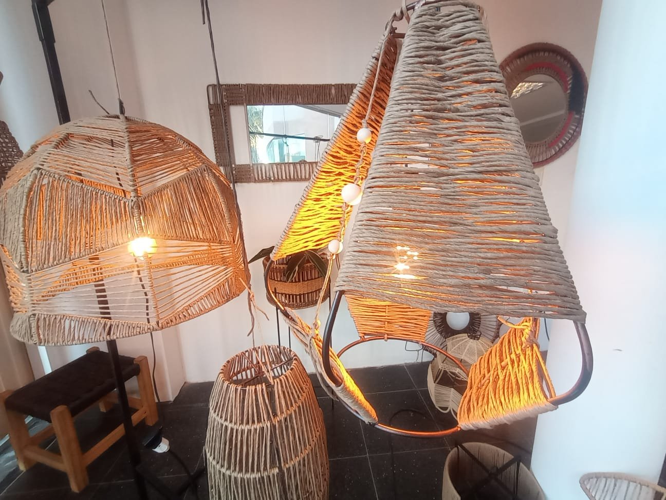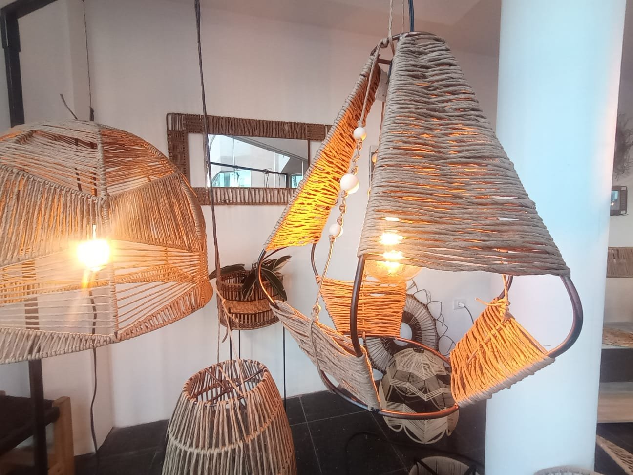 Lámpara elaborada en una estructura de hierro con hilo kraft. Esta lámpara refleja un carácter auténtico y aporta calidez en cualquier ambiente en que se encuentre.