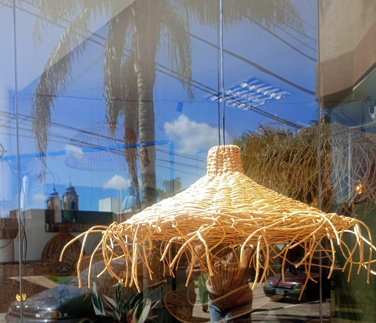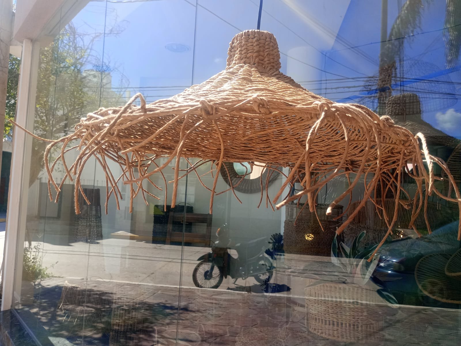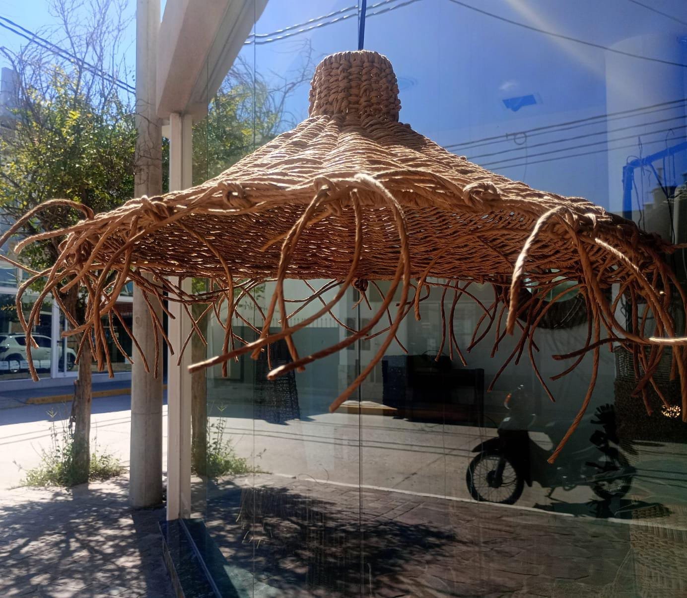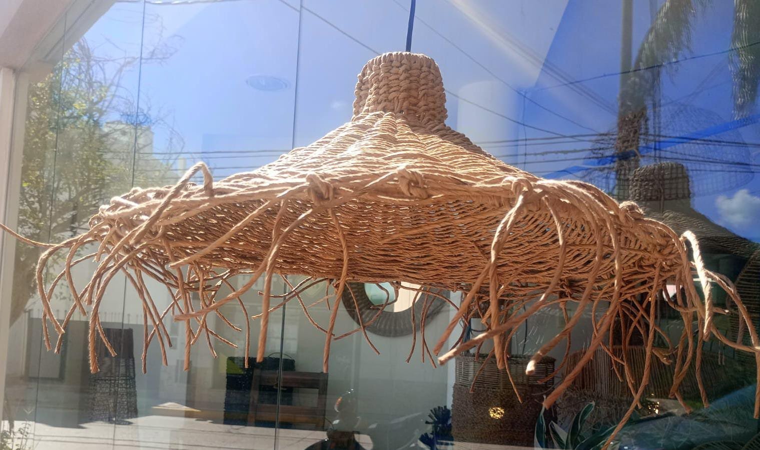 Lámpara elaborada en una estructura de hierro con hilo kraft, ideal para crear ambientes frescos, naturales en cualquier ambiente